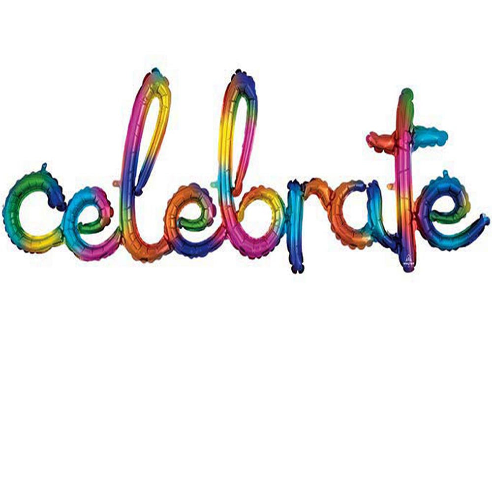 Rainbow Mini Shape Air Filled Script Phrase " Celebrate " Foil Balloon 59 Inch