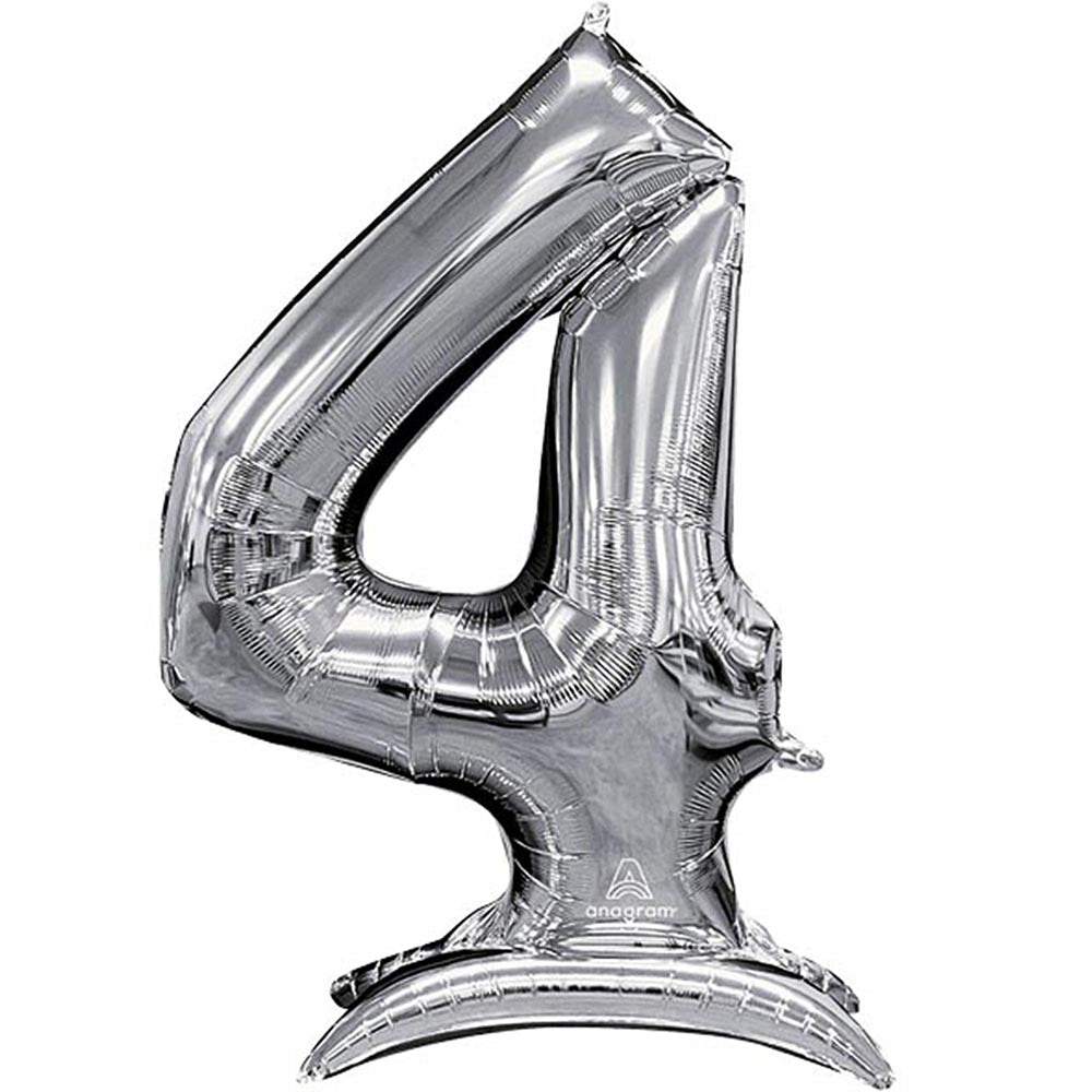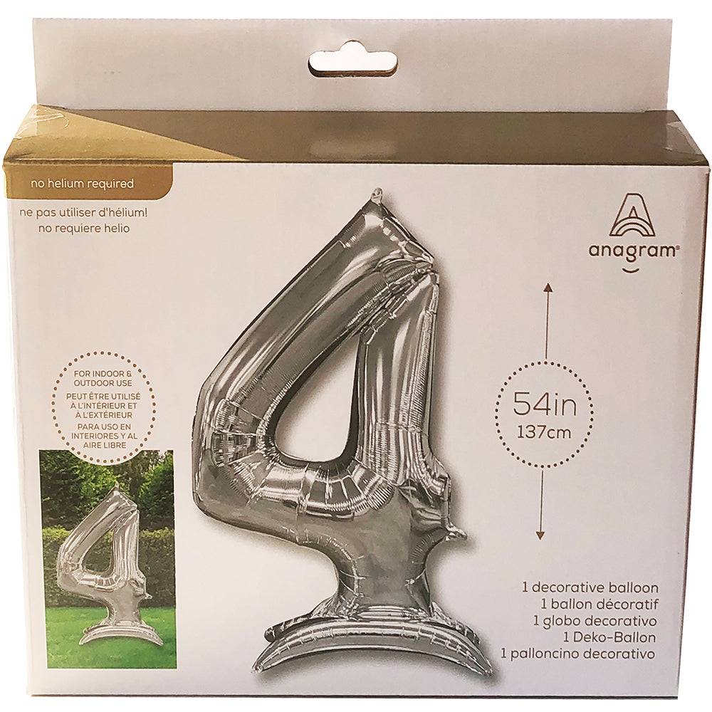 Giant Anagram Standing Airloonz Silver Number 4 Fill With Air Foil Balloon 54"