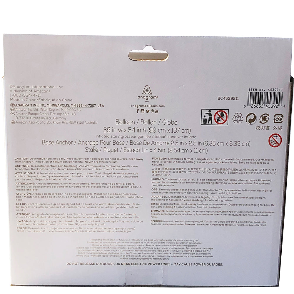 Quantity : 1 Balloon per package Size : 59 inch tall Material : Foil Brand : Anagram Color : Black with gold UPC : 026635424639 Packaging : Anagram Retail Poly bag Type : Fill with air or airloonz Character : Star Cluster Purpose of use : All occasions Word : No Printing : 2 sides Shape : Star Cluster Standing