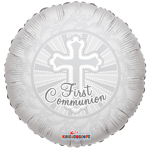 3 First Communion Theme White Silver Foil / Mylar Balloon 18"
