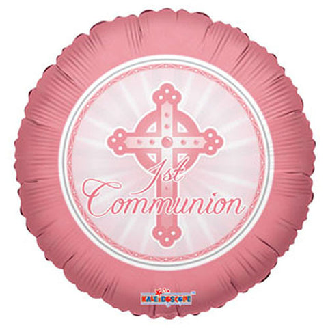 3 First Communion Theme Pink Cross Foil Balloon 18"