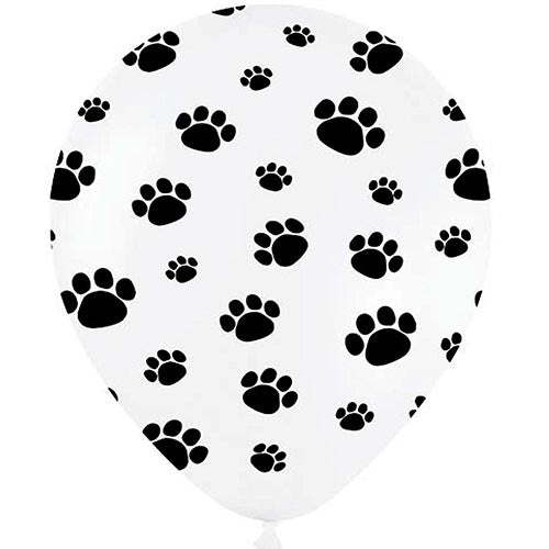 Quantity: 50 balloons per package Dimensions: 11 Inch Material: Biodegradable Latex or natural rubber Brand: Qualatex Color : White with black paws print around UPC : 071444768924 Packaging : Qualatex Poly bag Type : White with black paws