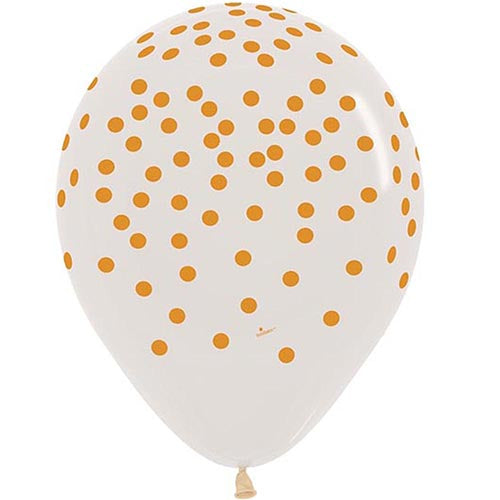 Quantity: 50 balloons per package Dimensions: 11 Inch Material: Latex Brand: Betallatex Color : Deluxe whitesands Dots : Copper confetti UPC : 030625533744 Packaging : Betallatex Poly bag Type Printing : All Over print