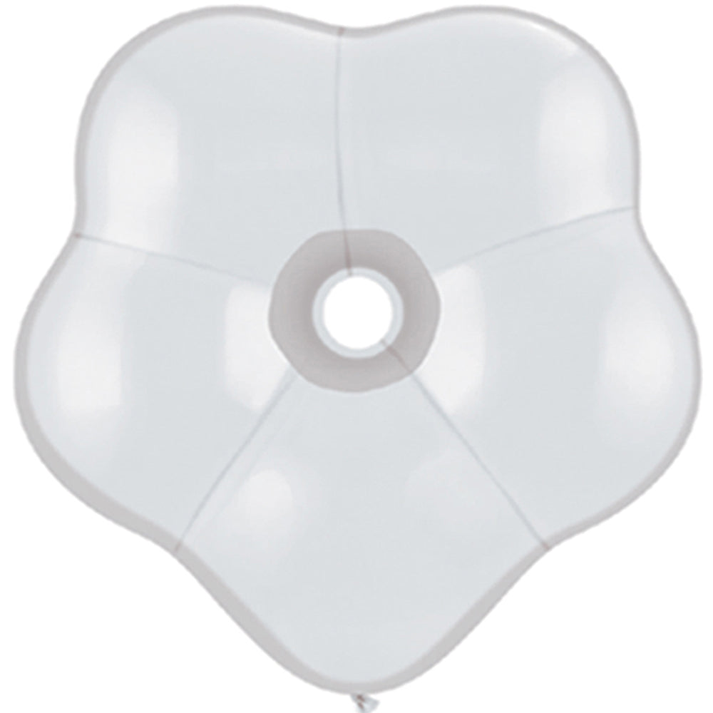 50 Qualatex white Geo Blossom Latex Balloons 6". There are 50 latex balloons per bag.