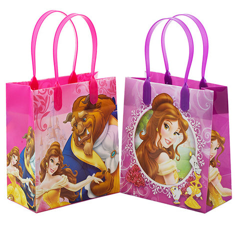 Princess Belle goodie bags 6" . These are good quality plastic goody bags.The size of goody bags approximately 6.5"x 6.5" x 3.0". You are buying 12 plastic gift /goody bags.